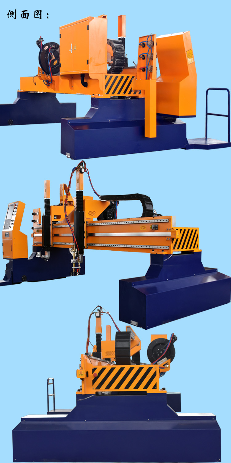 1.龍門式切割機機架采用8個厚的鋼板焊接而成,橫梁擋板采用20厚的鋼板由大型龍門銑一次性銑削而成,這樣可以使橫梁擋板表面平整,從而提高設備的切割精度。